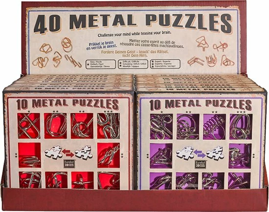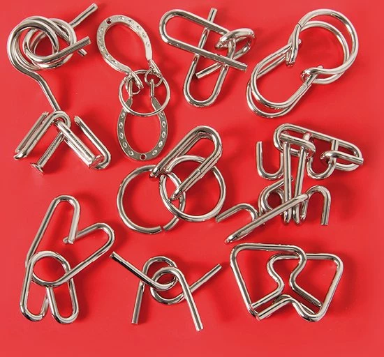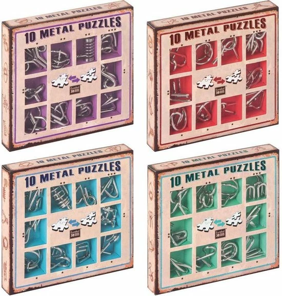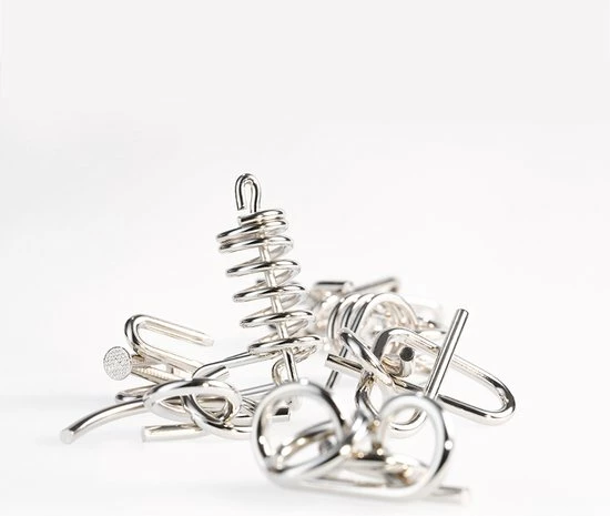 Ontdek deze set van 10 metalen breinbrekers: probeer de onderdelen van elkaar te scheiden en breng ze vervolgens terug naar de startpositie.