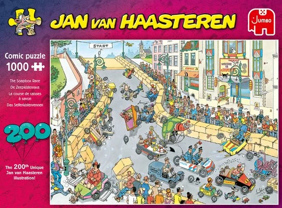 Jan van Haasteren puzzels zijn puzzels met veel kleur en details. Jan van Haasteren tekent al decennia lang humoristische platen die je steeds weer verrassen en laten lachen. De echte fans kennen de specifieke kenmerken van Jan van Haasteren en zoeken in elke puzzel direct naar de haaienvin, Sinterklaas, de handjes, het kunstgebit en Jan?s zelfportret. Jumbo heeft tientallen Jan van Haasteren puzzels in de collectie van 54 tot maar liefst 5.000 puzzelstukjes.