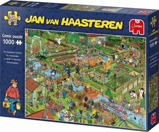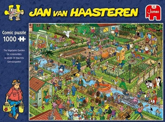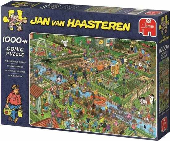 De volkstuintjes van Jan van Haasteren zijn zeker niet saai! Jan van Haasteren zorgt ervoor dat er van alles gebeurt in deze volkstuintjes. Jan van Haasteren puzzels zijn puzzels met veel kleur en details. Jan van Haasteren tekent al decennia lang humoristische platen die je steeds weer verrassen en laten lachen. De echte fans kennen de specifieke kenmerken van Jan van Haasteren en zoeken in elke puzzel direct naar de haaienvin, Sinterklaas, de handjes, het kunstgebit en Jan?s zelfportret. Jumbo heeft tientallen Jan van Haasteren puzzels in de collectie van 54 tot maar liefst 5.000 puzzelstukjes.