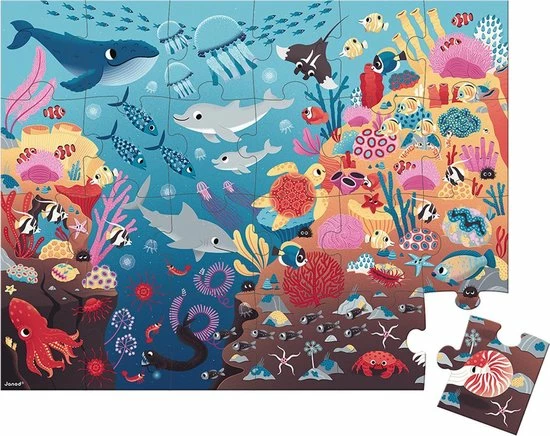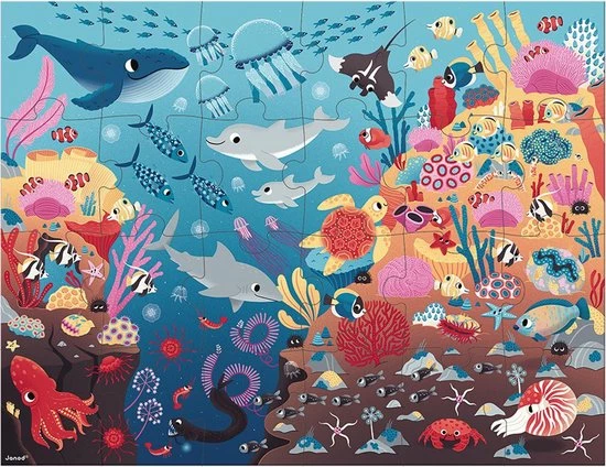 Magische 24-delige puzzel met de zee als thema. Doe het magische lampje branden en ga op ontdekking naar wat er zich diep onder water verschuilt! Dankzij de lamp wordt de puzzel tot leven gewekt en kan het kind verborgen afbeeldingen in de puzzel ontdekken. Een speelse 2- in-1 puzzel die de nieuwsgierigheid prikkelt.