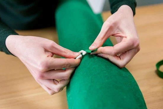 - Leg de koker op een smal uiteinde van de vilten ondergrond en wikkel voorzichtig het vilt met de puzzel eromheen, tot beide compleet zijn opgerold.