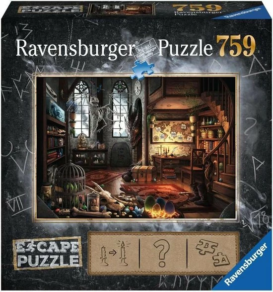 De mysterieuze illustratie dompelt puzzelaars en spelers onder in een mysterieuze wereld waar een “uitgang” te vinden is! Inhoud: een puzzel met 759 mysterieuze stukjes, een handleiding en een voorbeeld van de oplossing.