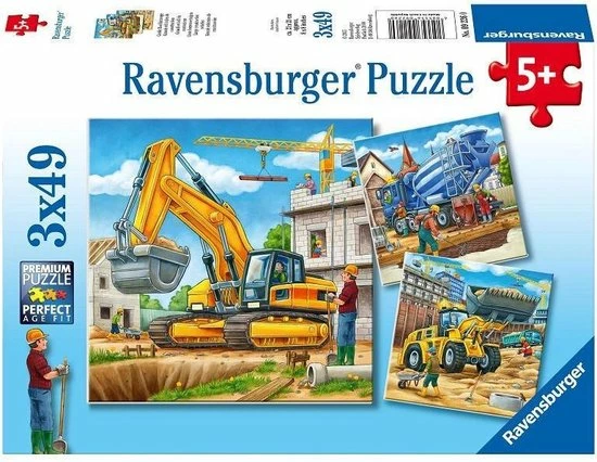 Ravensburger Puzzel Grote Bouwvoertuigen – 3×49 Stukjes – Kinderpuzzel