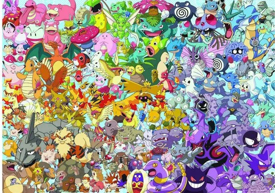 Puzzelen moet niet altijd gemakkelijk zijn! Daarom komt Ravensburger met deze Challenge Puzzels. Deze unieke puzzel heeft dezelfde kwaliteit als alle andere puzzels van Ravensburger!Als je zin hebt in een Pok??mon-uitdaging: dit is de puzzel voor jou! Pikachu en al zijn vrienden kleuren deze puzzel. De grote hoeveelheid Pok??mons maakt deze puzzel extra moeilijk.??Gemaakt van sterk premium karton. met linnen afwerking om schittering op de puzzelafbeelding te minimaliseren. Afmetingen puzzel: ca. 70 x 50 cm Vanaf 12 jaar ??