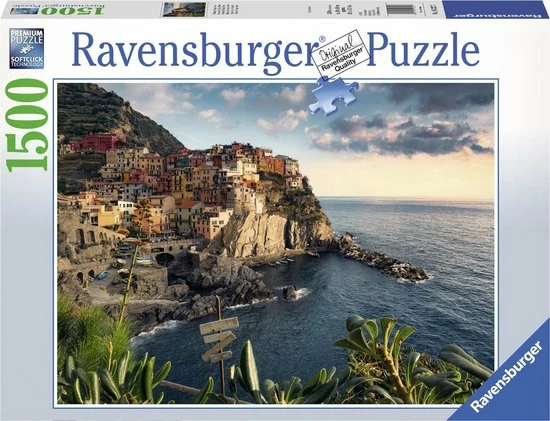 Ontsnap uit de realiteit en stap in de wereld van Ravensburger puzzels. Heb je al wat ervaring met puzzels van 1000 stukjes? Dan wordt het tijd voor een nieuwe uitdaging: onze puzzel van 1500 stukjes! Als je op zoek bent naar langer puzzelplezier, maar met een gemiddelde moeilijkheidsgraad, dan is dit de juiste puzzel voor jou. Dankzij de met de hand gemaakte stansmessen is de vormvariatie van de stukjes oneindig. Jong en oud zullen genieten van deze Uitzicht op Cinque Terre puzzel met 1500 stukjes.