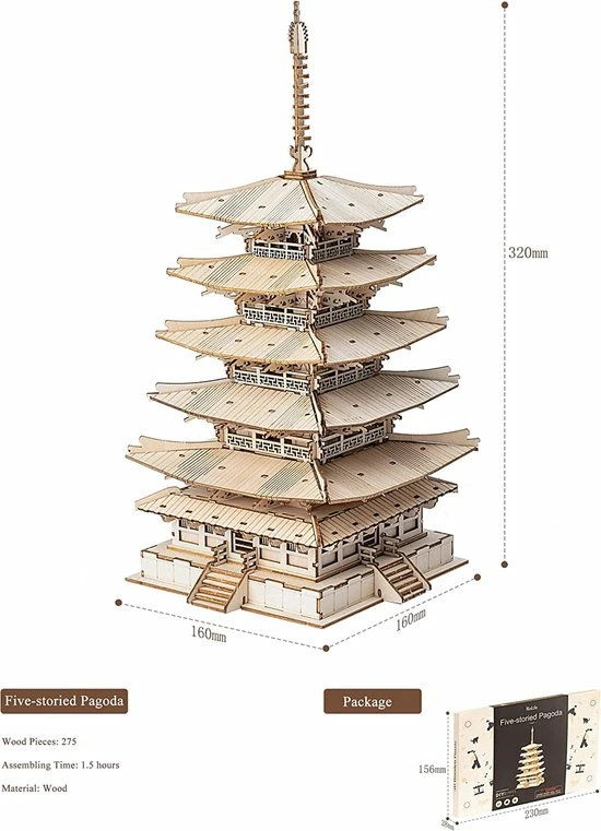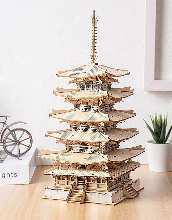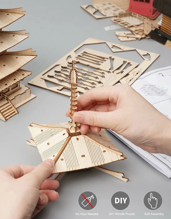 Rolife 3D DIY Houten Puzzel Vijf Verdiepingen Pagode Voor Volwassenen Tieners Model Kits Voor Volwassenen Om Te Bouwen, 275 Stuks